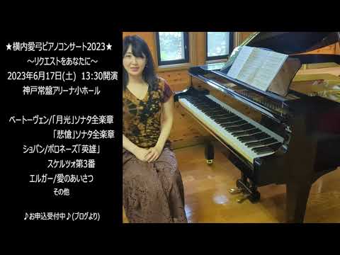 【2023.6/17神戸公演ご案内】とノクターン2番(ショパン)Chopin Nocturne No.2 Op.9-2 横内愛弓pf:Ayumi Yokouchiby admin2024-04-27 横内愛弓ピアノコンサート2023~リクエストをあなたに~ 【日時】2023年6月17日(土) 13:30開演 【場所】神戸常盤アリーナ小ホール 兵庫県神戸市長田区蓮池町1-1(兵庫県立文化体育館) 【お申込】https://ameblo.jp/ayumi-pf/entry-12797417190.html 関連記事: ベートーヴェン/ピアノ・ソナタ 第14番 嬰ハ短調「月光」 第3楽章,Op.27-2 ベートーヴェン: ピアノ・ソナタ第14番 嬰ハ短調 「月光」 Op. 27, No. 2[リモートワークも休校もお任せ!おうちで毎日ミニコンサート♪ベートーヴェン三大ピアノ・ソナタ編] ベートーヴェン ピアノソナタ第14番「月光」 月光ソナタ 第2楽章(ベートーヴェン)Beethoven – “Moonlight” Sonata – 2nd Movement – pianomaedaful コメントを残す コメントをキャンセルメールアドレスが公開されることはありません。 ※ が付いている欄は必須項目です名前 ※ メール ※ サイト コメント ※ 次回のコメントで使用するためブラウザーに自分の名前、メールアドレス、サイトを保存する。 上に表示された文字を入力してください。 前Chopin/NocturuneNo.2 Op.9.No.2/Pianoショパンノクターン第2番変ホ長調作品9-2次Frederic Chopin Nocturne 16 – Nocturne in E Flat Major Op 55 No 2