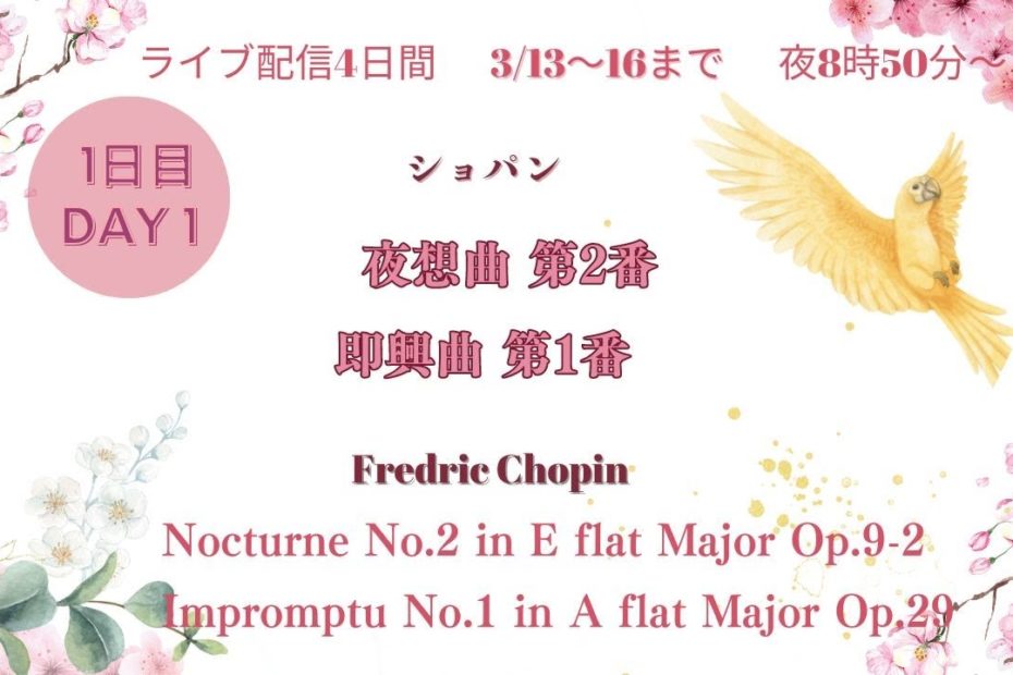 ライブ配信4日間 3/13~16 毎晩20時50分より約15分