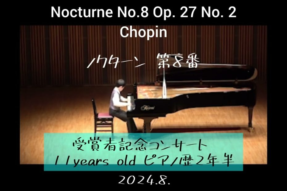 11yearsold 2nd son. 2024.8. Full version↓ ショパンが大好きな次男 憧れの1曲を受賞者記念コンサートで弾かせて頂きました #nocturne #chopin #ピアノ三兄弟 #ピ… 続きを読む »Nocturne No.8 Op. 27 No. 2Chopinノクターン 第8番 ショパン ピアノ歴2年半小6 コンクール受賞者記念コンサートにて